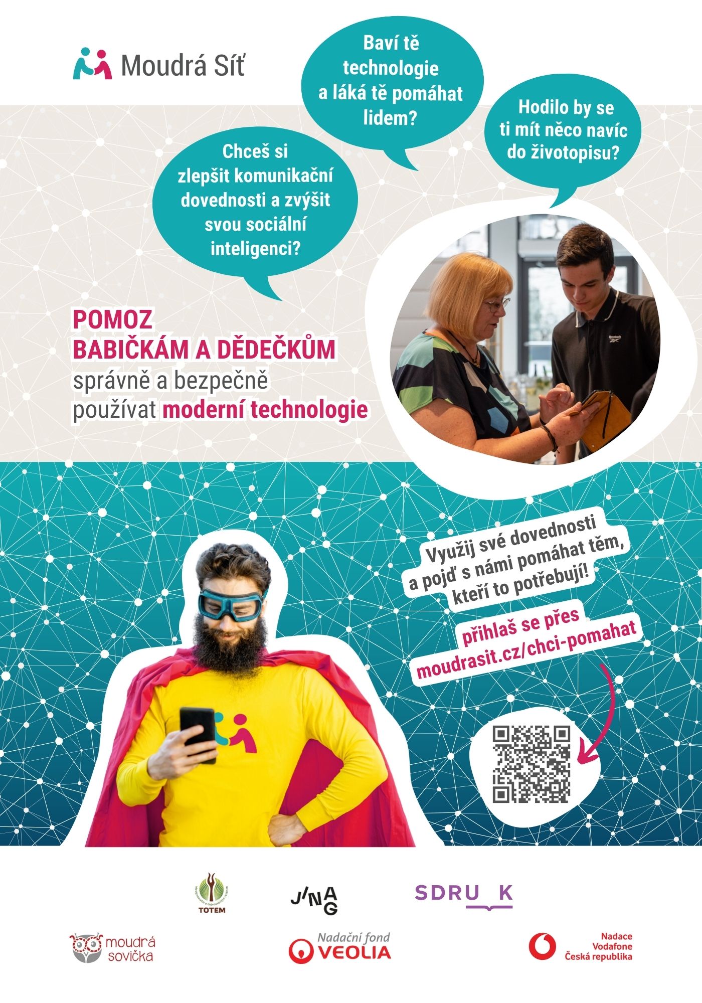 Podporujeme projekt Moudrá síť a hledáme digitální asistenty – dobrovolníky pro pomoc seniorům s moderními technologiemi.