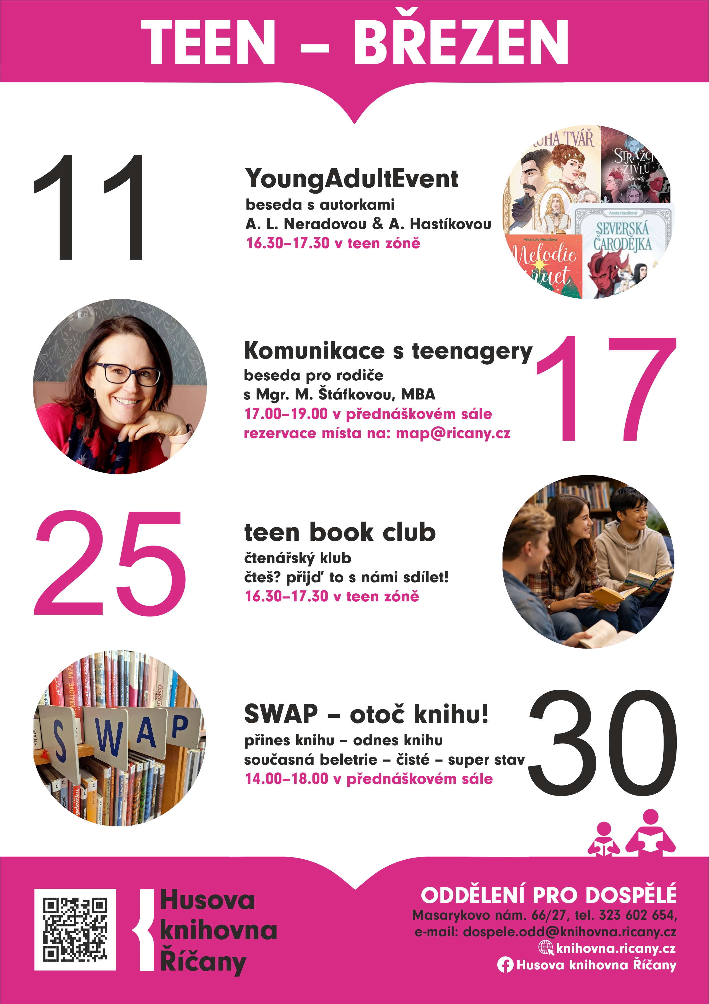 V oddělení pro dospělé zveme všechny teenagery (12+) na akce TEEN – BŘEZEN.