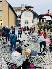 Kouzelná zahrada knihovny se od 17 do 20 hodin proměnila v místo plné pohody, hudby a dobré nálady. Návštěvníci si mohli společně opéct špekáček, vychutnat připravené občerstvení a užít si příjemnou atmosféru podzimního podvečera. O hudební doprovod se postarala kapela Blek-flek, která svým repertoárem roztančila i rozezpívala celé publikum. Akce byla otevřena pro širokou veřejnost a nabídla krásnou příležitost k setkávání, sdílení i k důstojnému rozloučení s letošním létem. Již nyní se těšíme na další ročník v roce 2026!